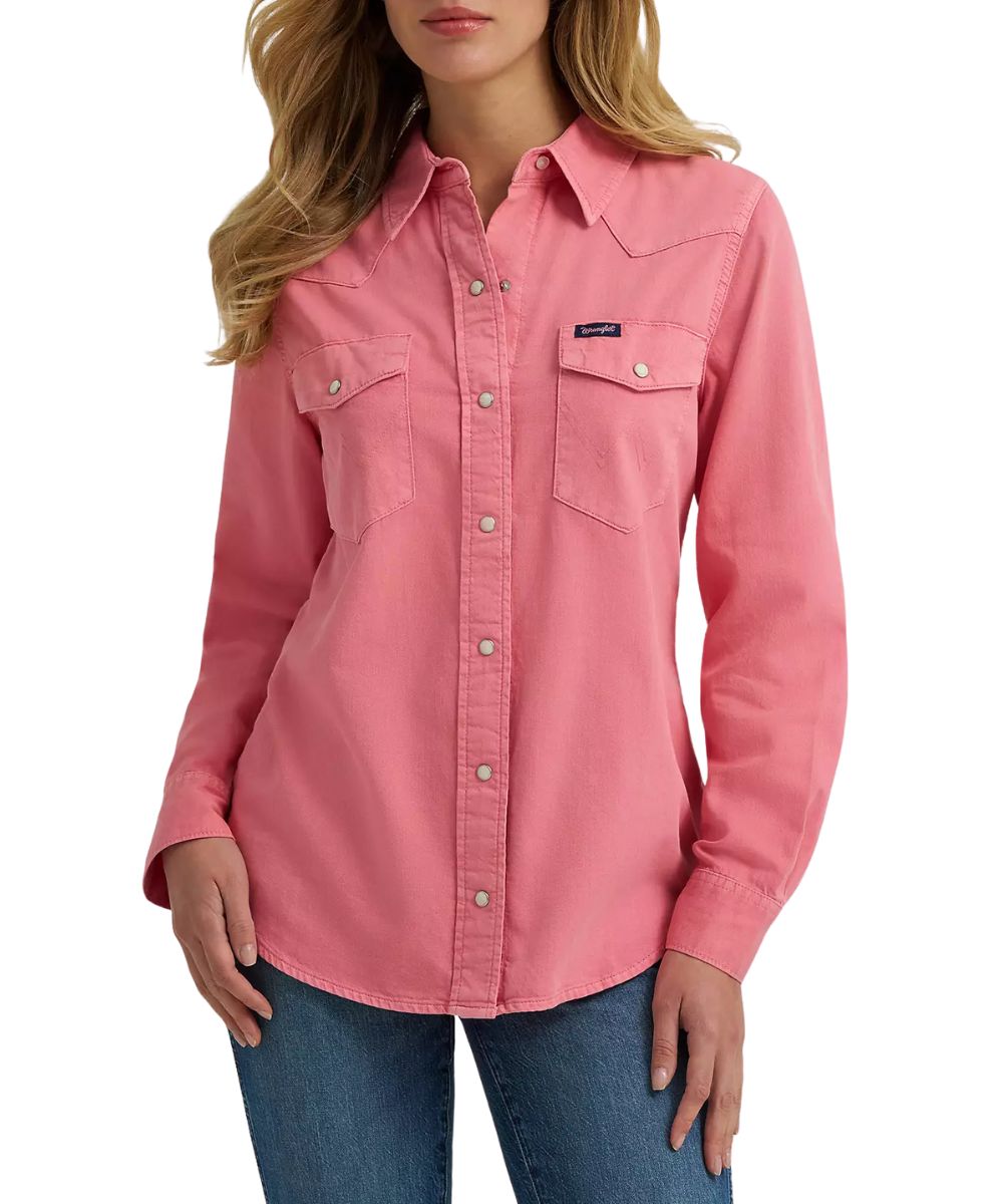 100% Cotton; Slim Fit; Long Sleeves; Spread Collar; Snap Front Placket And Cuffs; Pearl Snaps; Single Point Snap Flap Chest Pockets With 'W' Logo Stitching And Logo Label; Single Point Western Yokes; Curved Hem; Color Washed Solid Print; Color: Pink/Salmon; Style #112375182