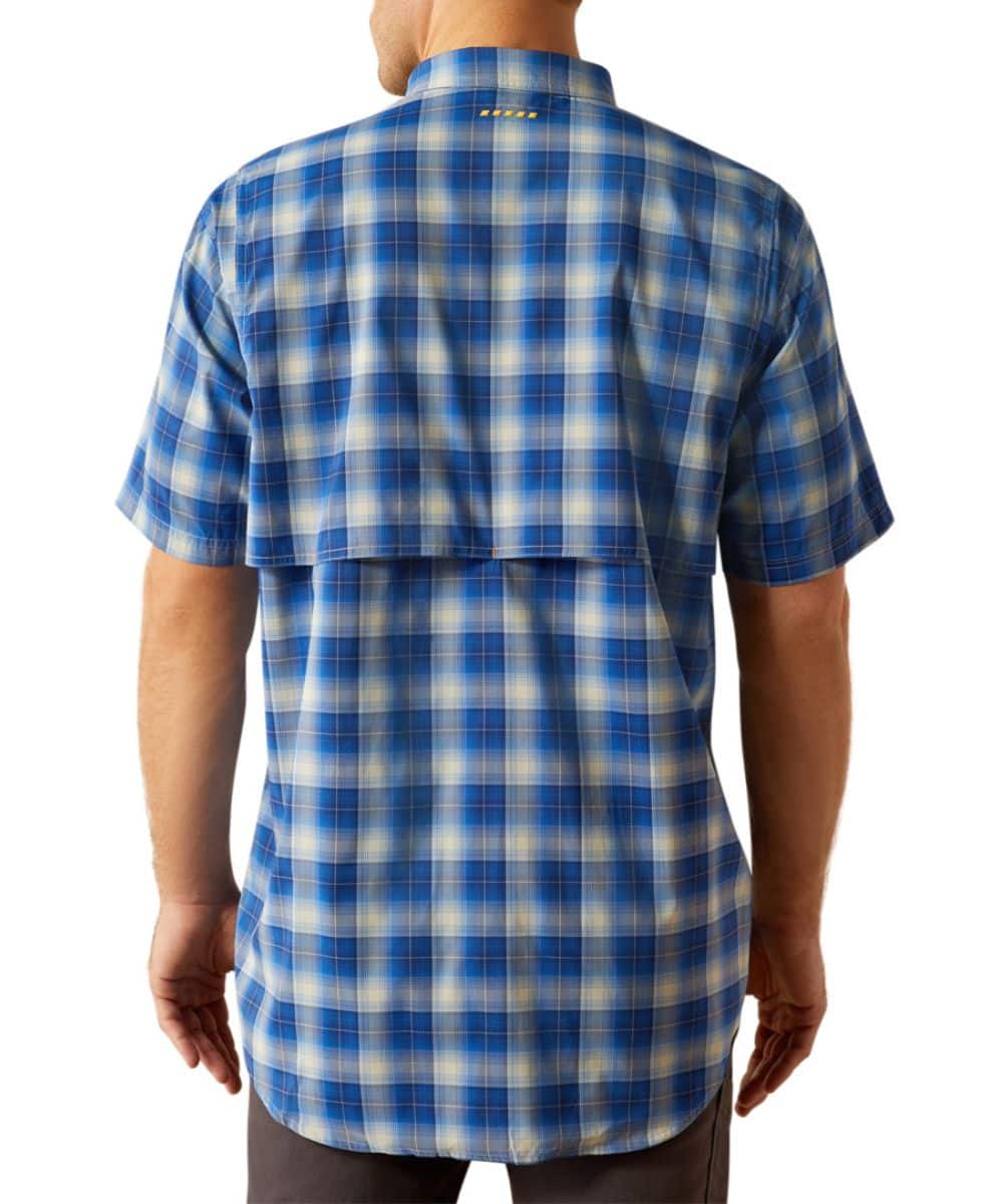 92% Polyester/8% Spandex; 4 oz Technical DuraStretch Fabric Provides Durability With The Freedom To Move; Short Sleeves; Button Down Collar And Placket; Single Point Button-Through Flap Chest Pockets With Logo Label And Hidden Pen/Pencil Slot; Mesh Lining; Rebar Logo Embroidery At Back Collar; VentTEK Technology Puts Airflow Where You Need It Most To Keep You Cool; Greater Arm Mobility Lets You Move Freely; Moisture Movement Technology Helps Keep You Dry; UPF 50 Sun Protection Fabric; Three Rows Of Stitching Adds Durability; Microfiber Lens Cloth Is Hidden In The Hem For On-The-Go Cleaning; Long Back Hem Helps Keep You Covered While You Bend And Stretch; Contains Materials That Meet The Bluesign Sustainability Standards; Generous Fit That Gives You Room To Bend, Reach, And Lift With A Longer Hem That Stays Tucked-In; Strong Blue Plaid Print; Color: Blue; Style #10058537