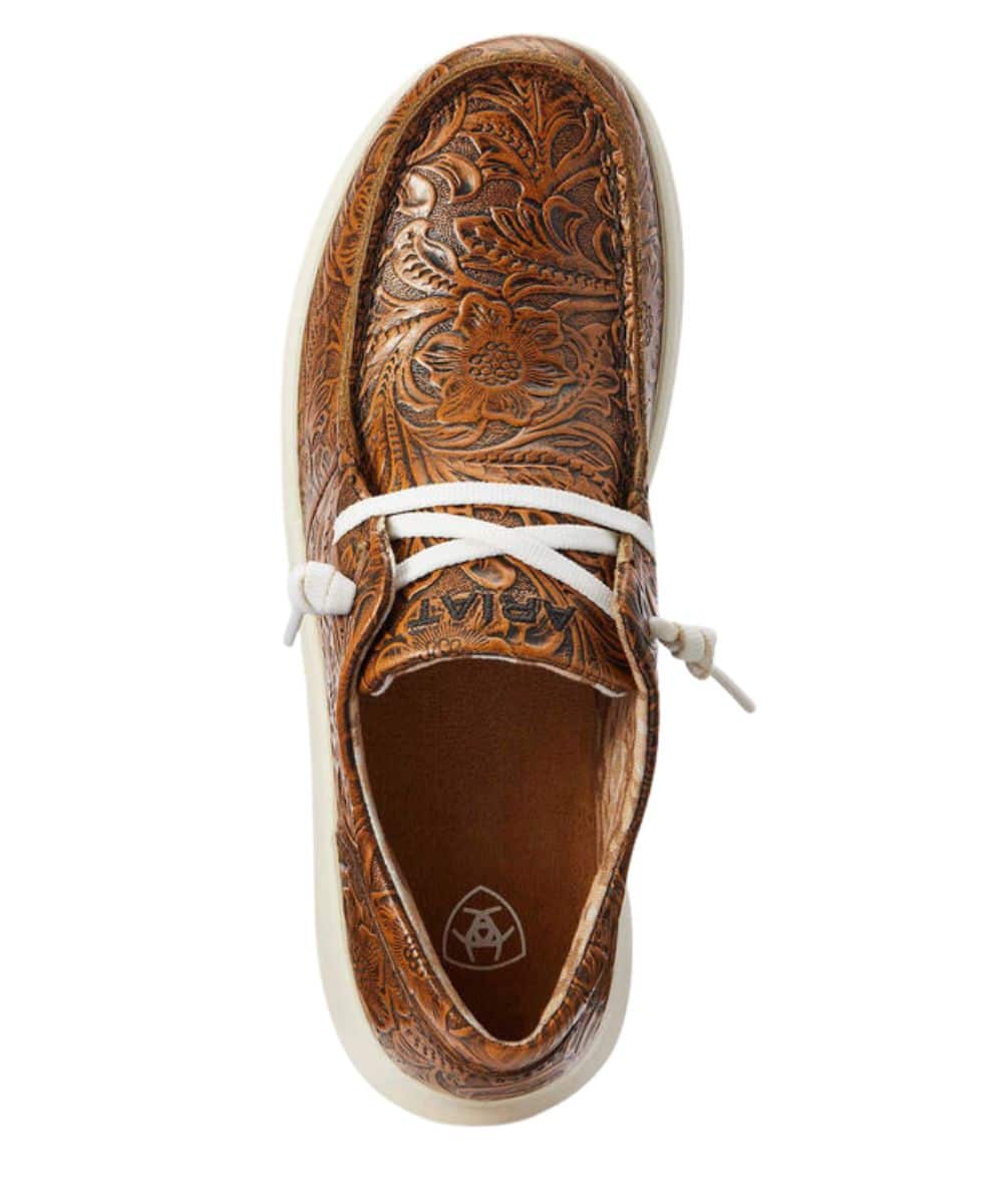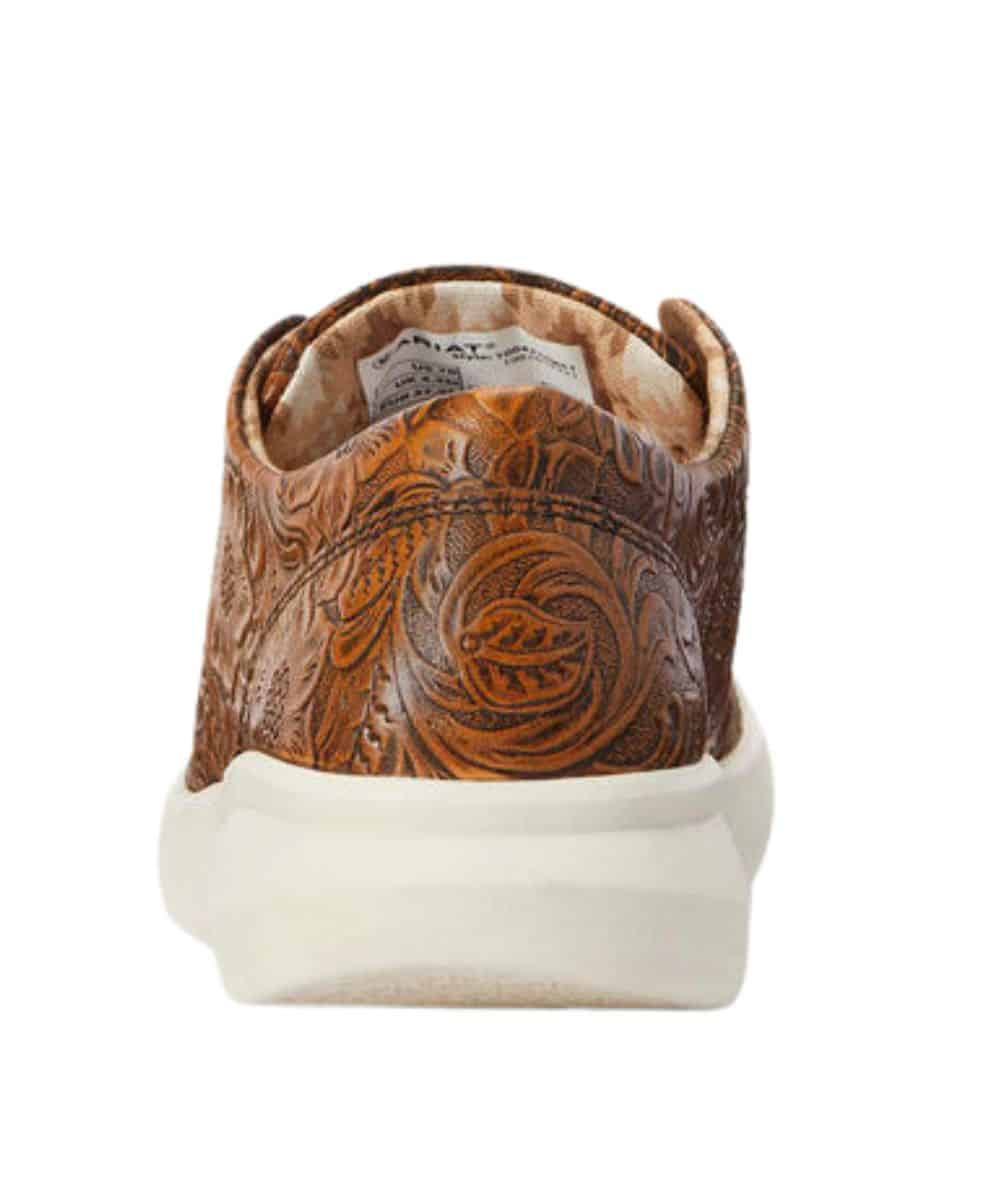 3″ Height; Floral Embossed Full Grain Leather Upper; Lace Entry; Mesh Lining; Open Cell Cushioning Insole; FLX Foam Sole Has A Light Springy Feel That Cushions Each Step; Flat Heel; Moc Toe; Color: Brown; Style #10042508
