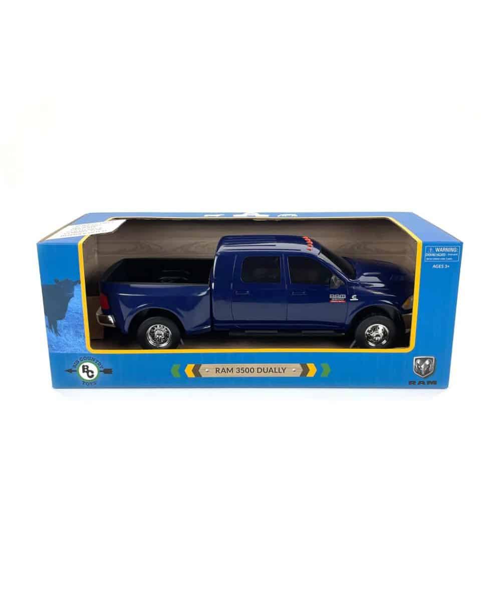 1:20 Scale Replica Ram 3500 Mega Cab Dually Comes Complete With A Gooseneck Connector And Bumper Hitch To Fit With Big Country Trailers; Tailgate Can Fold Down; Color: Blue; Ram 3500 Truck Measures Approximately: 12.5″ L x 5.25″ W x 4″ H; Style #439B