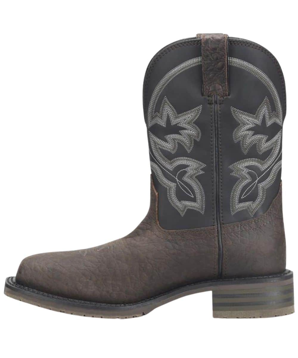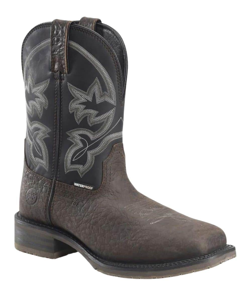 10″ Shaft; Carib Dusky Print Leather Vamp/PU Black Quarter; Leather Pull Tabs For Easy On; Pig Synthetic Blend Lining; Mesh Lining With Waterproof Membrane; Double Tuff Removable Footbed; A/A Plastic Welt And Nailed Heel Construction; Oil And Slip Resisting I.C.E Outsole; 4″ Dip; Square Toe; Composite Safety Toe; ASTM I-75/C-75; Waterproof; Electrical Hazard Protection; Color: Dark Brown; Style #DH4151