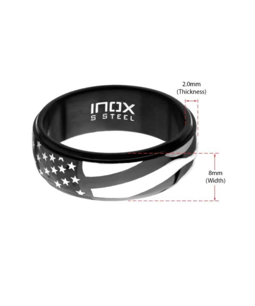 Black IP Steel; American Flag Spinner Ring (Center Band Spins); Contemporary/Spinner Design; Style #FR2107OP