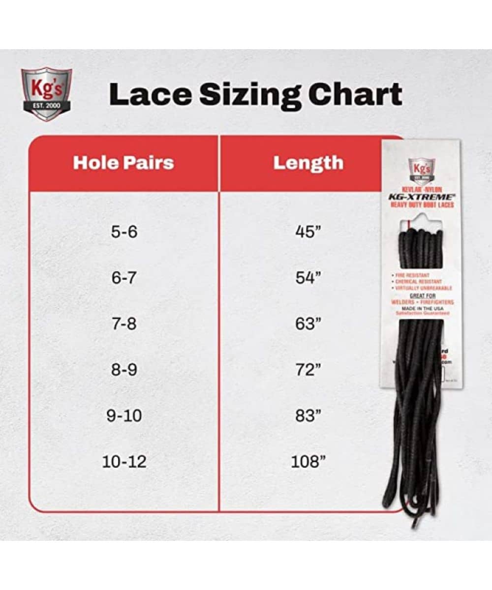 100% Kevlar And Heavy Duty Nylon Laces Are Braided Together, Wax Coated, And Then Flame-Resistant Fiber Tipped To Form The Toughest Lace; Chemical Resistant, Fire Resistant, And Virtually Unbreakable; These Tough Boot Laces Make The Perfect Gift For Any Welder, Machinist, Firefighter, Construction Worker, Etc.; Made In The USA; Color: Black; Size: 54″; Style #254