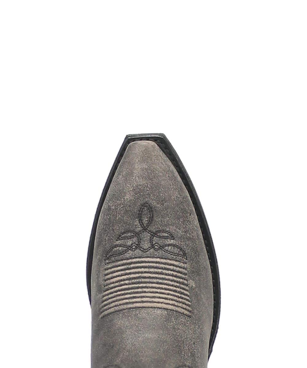 12″ Shaft; Black Leather Boot With Embroidery Detailing; Leather Pull Tabs For Easy On; Cushion Comfort Insole; Laredo Flex Rubber Outsole; 1.25″ Medium Cowboy Heel; Snip Toe; Style #52175