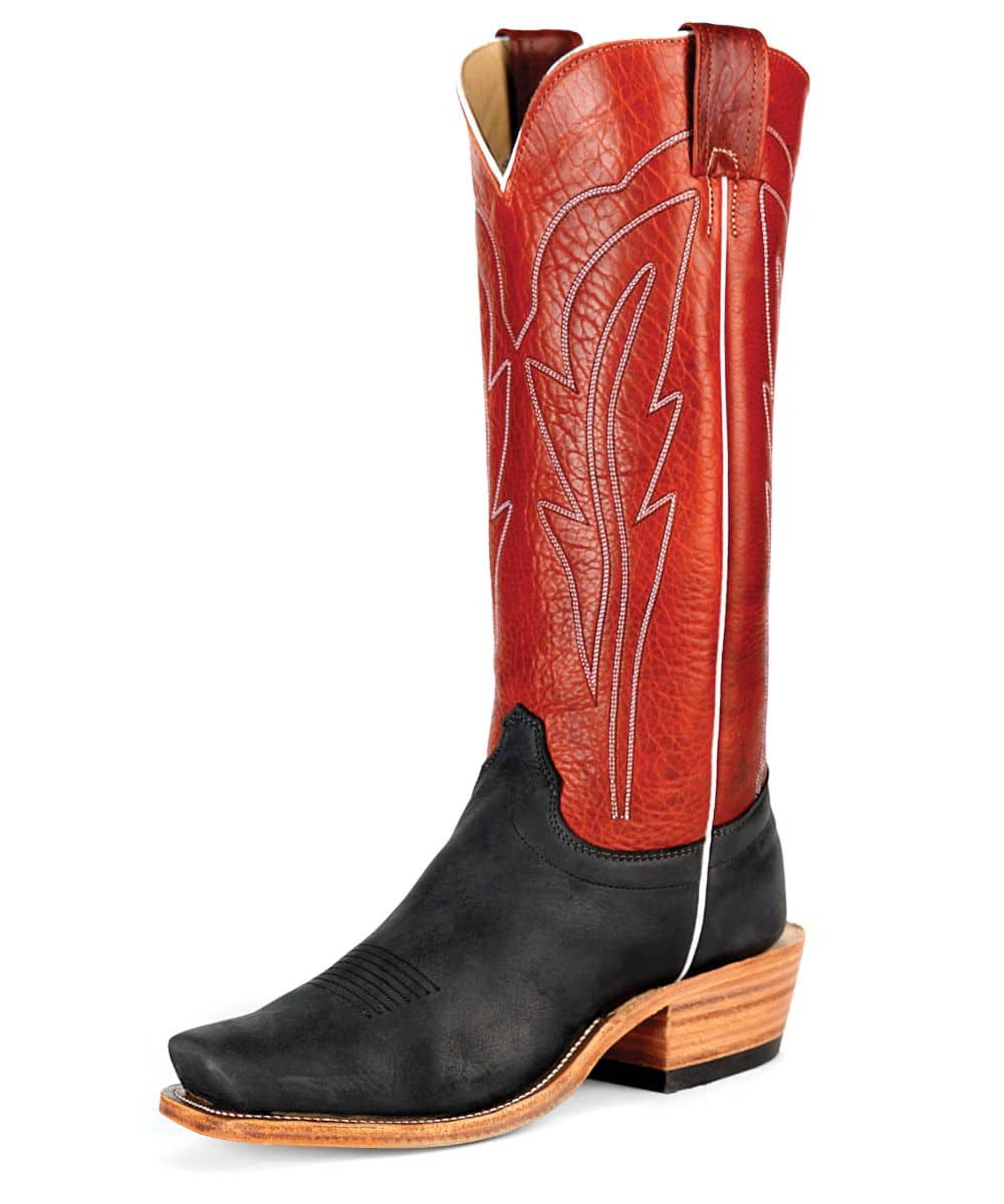 THIS ITEM IS ONLINE ONLY; 16″ Shaft; Black Wyoming Reverse Leather Vamp; Deep Red Navajo Bison Leather Shaft; Leather Pull Tabs For Easy On; Black Neoprene Midsole; Single Welt Stitch; Black Hybrid Sole; 1 1/2″ Heel; O Toe; Made In The USA; Color: Black/Red; Style #TT14