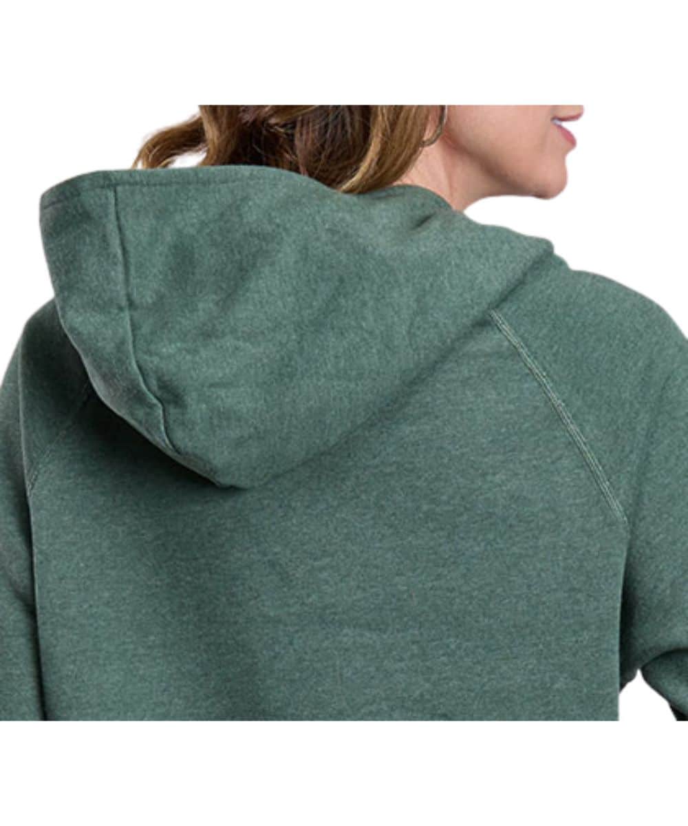 52% Cotton/48% Polyester; Long Raglan Sleeves; Asymmetrical Crossover Hooded Collar With Button Closure; Ivory “Stetson” Script With “Since 1865” Embroidery On Front Center; Kangaroo Pocket; Rib Knit Waistband And Cuffs With Thumbholes; Color: Forest Green; Style #11-098-0562-8018