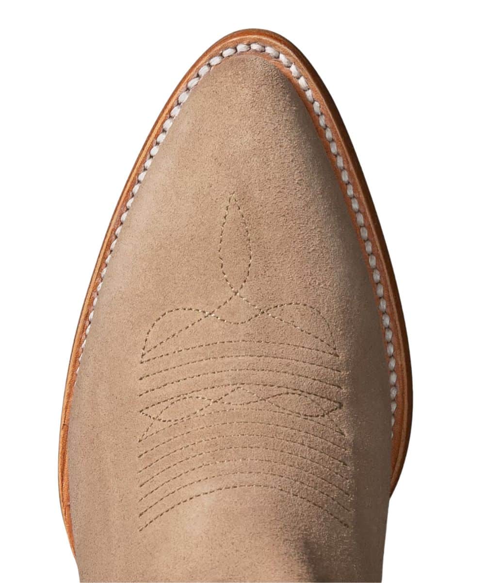 17″ Shaft; Premium Water-Resistant Suede; Intricate Western Flame Stitching On Shaft; Pull Tabs For Easy On; Soft, Hung Leather Lining For All-Day Comfort; Leather Outsole For Durability; 2″ Heel With Rubber Heel Cap; Refined Western 0 Toe (Round Snip Toe) With Signature Toe Bug And Elegant Stitching; Color: Driftwood; Style #20029 THE ABBY DRIFTWOOD