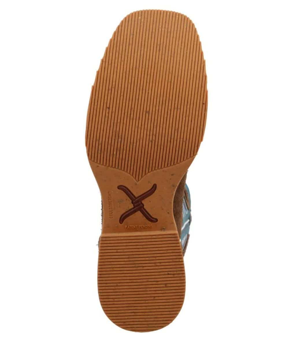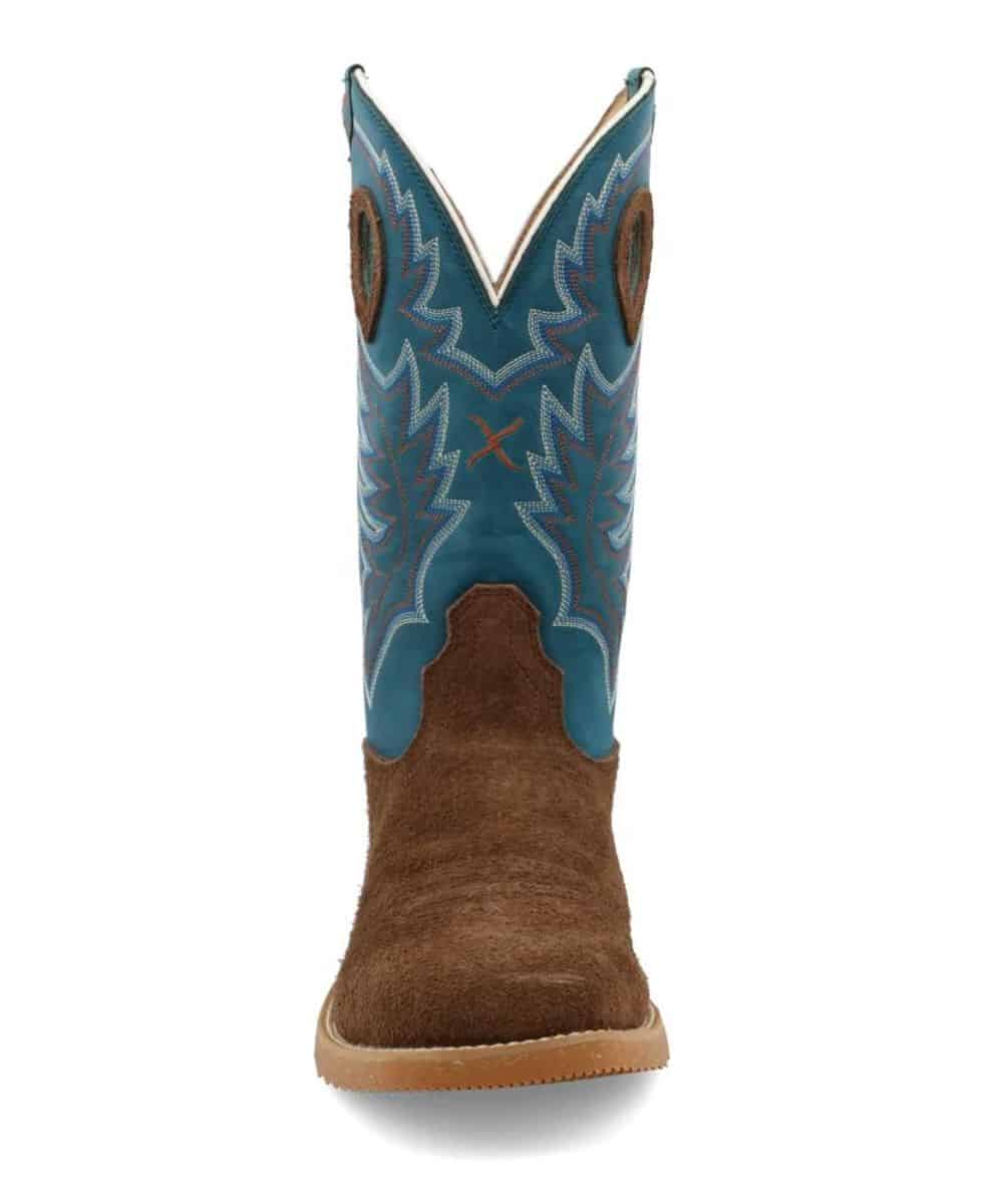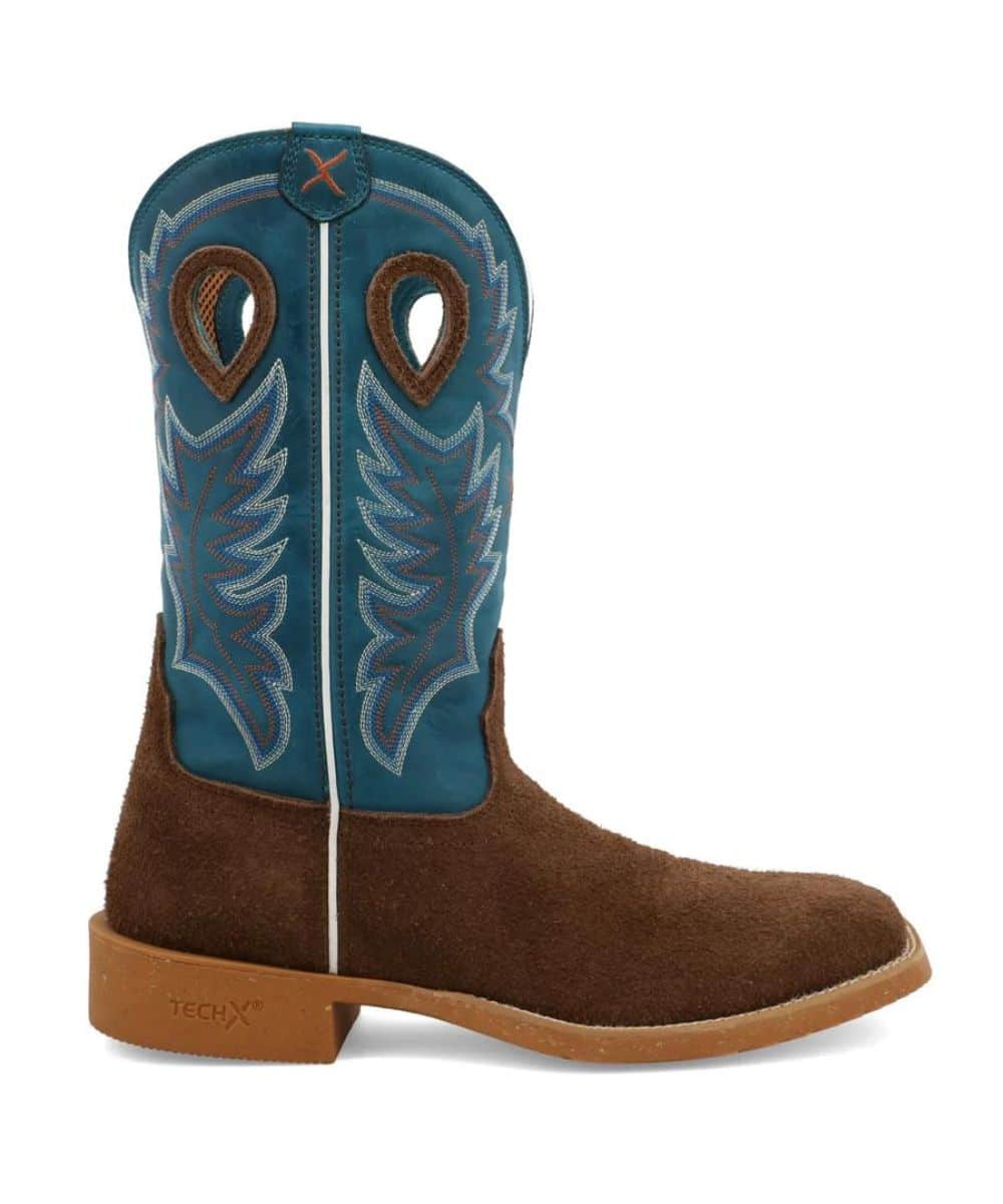 12″ Shaft; Full Grain Leather Upper; Brown Roughout Leather Vamp With Blue Upper; Reinforced Leather Pull Holes For Easy On; Taped Interior Seams; Air-Mesh Lining; Blend85 Footbed Made With 85% Recycled Foam Featuring EcoTWEED Lining Made From Recycled Plastic Bottles; Double-Stitched Welt And Nylon/Glass Fiber Shank; CellStretch Comfort Technology Activates More Than 100 Individual Pressure Points Of Cloud-Like Comfort In The Heel And Ball Of The Foot; Molded Rubber Outsole Integrated With Blended Rice Husk; 1.5″ Walking Heel; Integrated Spur Shelf; WS Square Toe; Color: Chocolate/Stormy Blue; Style #MXTR002