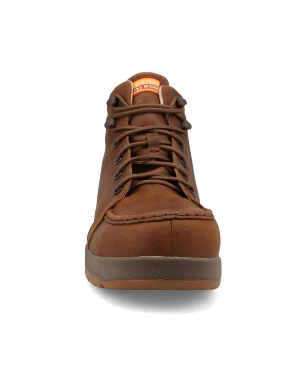 6″ Shaft; Leather Upper; Cushioned Suede Collar; Heel Pull Tab For Easy On; Lace-Up Entry; Blend85 Footbed; Eco-Friendly Comfort; Rubber Outsole; Electrical Hazard Protection; Heat, Oil, And Slip Resistant Outsole; Triple-Stitched Durability; Block Heel; Moc Toe; Nano Composite Safety Toe; Color: Tobacco Brown; Style #MWPN001