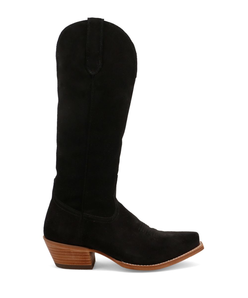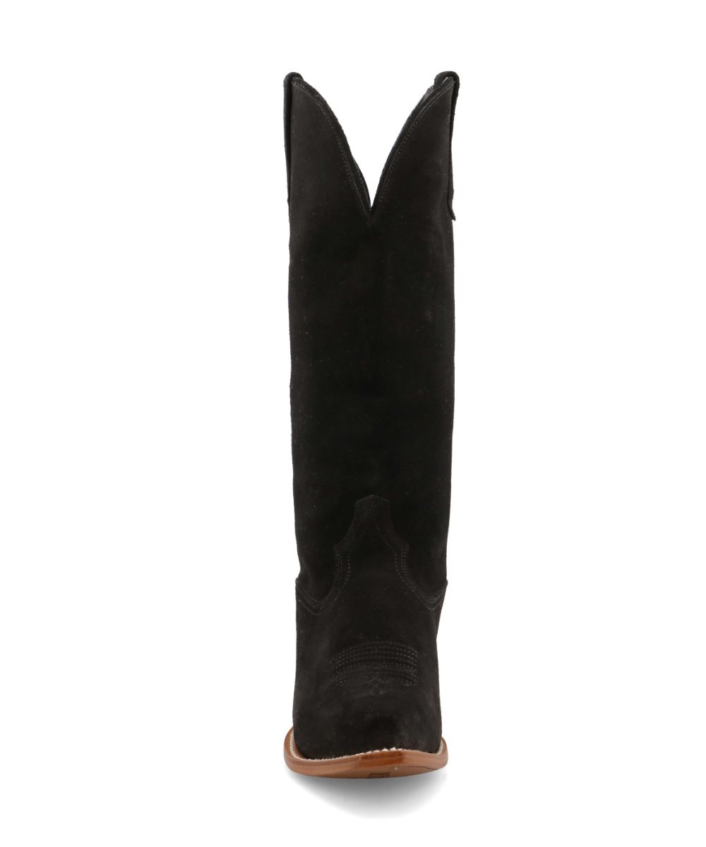 15″ Shaft; Suede Leather Upper; Leather Pull Tabs; Leather Lining; CellSole Footbed Featuring CellStretch Comfort Technology; Single Stitched Welt; Steel Shank; Leather Outsole; Rubber Heel Cap; 1.75″ Tall Western Heel; Snip Toe; Color: Black; Style #WBSN021