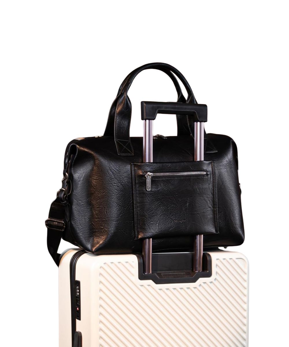 Made Of PU Leather And Tapestry Knitted Fabric; Weekender Duffle Bag; Aztec Tapestry Knitting Pattern And Wrangler Logo Applique On The Front; Top Zipper Closure; Inside Contains An Interior Padded Compartment And A Zipper Pocket; Zipper Pocket On The Back; Back Pocket Sleeve Slides Over Rolling Luggage Handle; 6" Double Handles; 23" Removable/Adjustable Nylon Shoulder Strap; Measures Approximately: 18" L x 7" W x 12" H; Color: Black; Style #WG174-5110BK