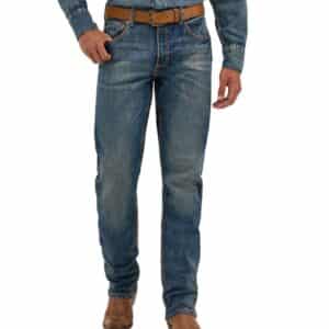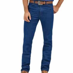 70% Cotton/29% Polyester/1% Spandex; 14 Oz. Denim; Cowboy Cut; 2X Longer Lasting; Regular Fit; Mid Rise (10 1/4″ Front Rise); Zip Fly With Button Closure; Five Pocket Styling; “W” Stitched Back Pockets And A Leather Wrangler Logo Patch; More Comfortable Waist; Deep Front Pockets With Functional Watch Pocket; Tapered Leg; 16 3/4″ Leg Opening; Color: Stone Bleach; Style #47MACSB